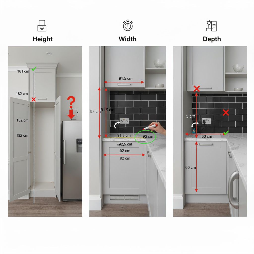 המדריך המלא למדידת מקרר: איך מודדים נכון את הנישה (גובה, רוחב, עומק) ומשאירים מקום לאוורור